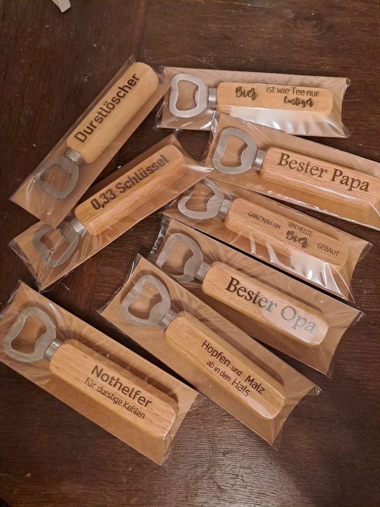 Gerne fertigen wir dir auch einen Flaschenöffner nach deinem Wunschtext an